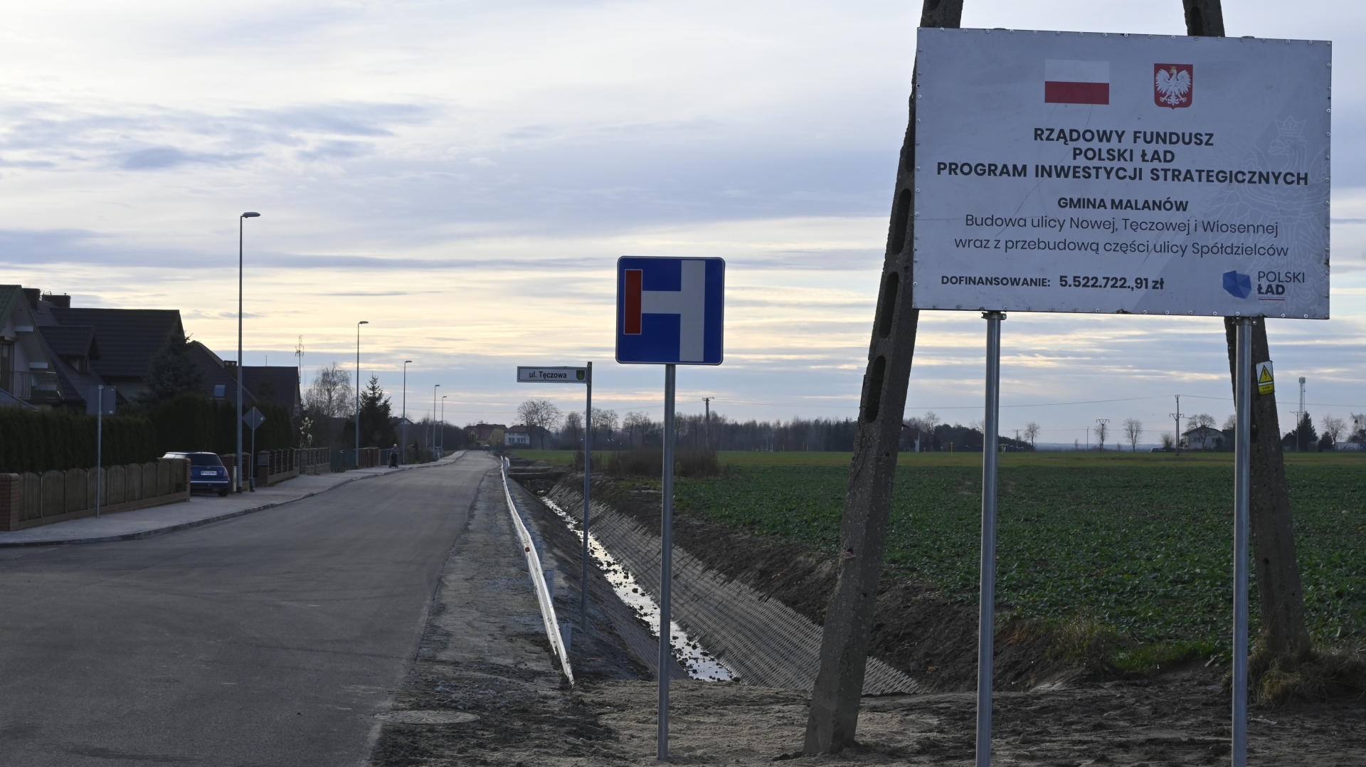 Równie ważnym aspektem było rozwiązanie problemu wód opadowych i roztopowych, które do tej pory zalewały drogi. Nowa kanalizacja deszczowa oraz przydrożny rów na ul. Nowej skutecznie odprowadzają nadmiar wody, co znacznie poprawi komfort korzystania z drogi.